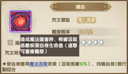 在《魔法師之徒》遊戲的魔法咒文中,會出現:恢復係數、傷害係數、流失係數、轉化係數等效果。